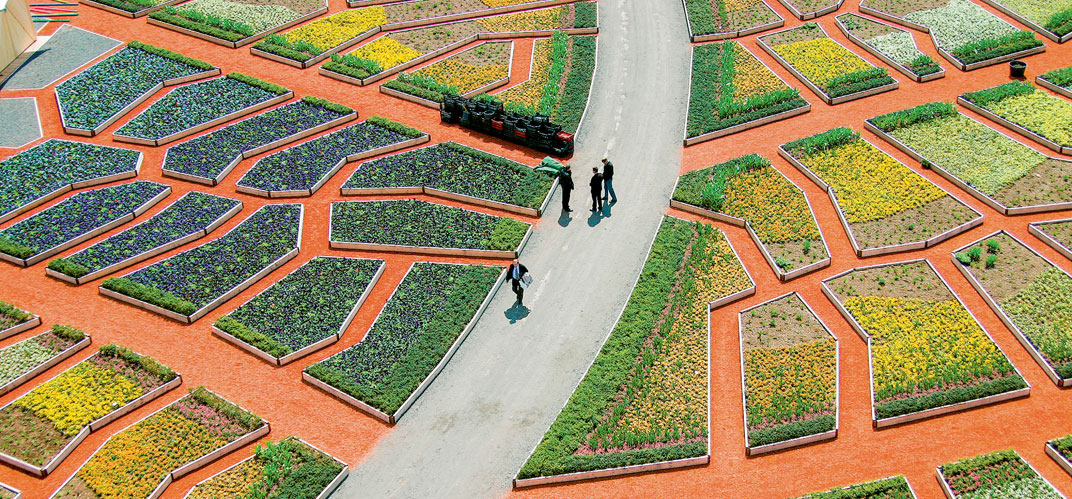 L’organisation spatiale des parterres de fleurs imitent la structure à une échelle microscopique du souci d’eau, une petite fleur jaune et vivace qui pousse dans les marais. Entre les fleurs, les chemins en terre battue emmènent les visiteurs quelques mètres plus loin, vers un paysage simple, bicolore, fait de monts et de creux, pensé pour stimuler l’imagination et la créativité des promeneurs, et surtout des plus jeunes.